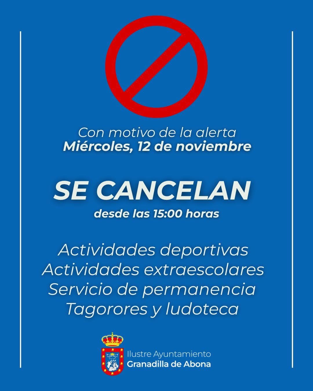 Con motivo de la alerta por lluvias, viento e inundaciones decretada por el Gobierno de Canarias, a través de la Dirección General de Emergencias, 𝘀𝗲 𝘀𝘂𝘀𝗽𝗲𝗻𝗱𝗲𝗻 𝗺𝗮ñ𝗮𝗻𝗮 𝗺𝗶é𝗿𝗰𝗼𝗹𝗲𝘀, 𝟭𝟮 𝗱𝗲Leer Más