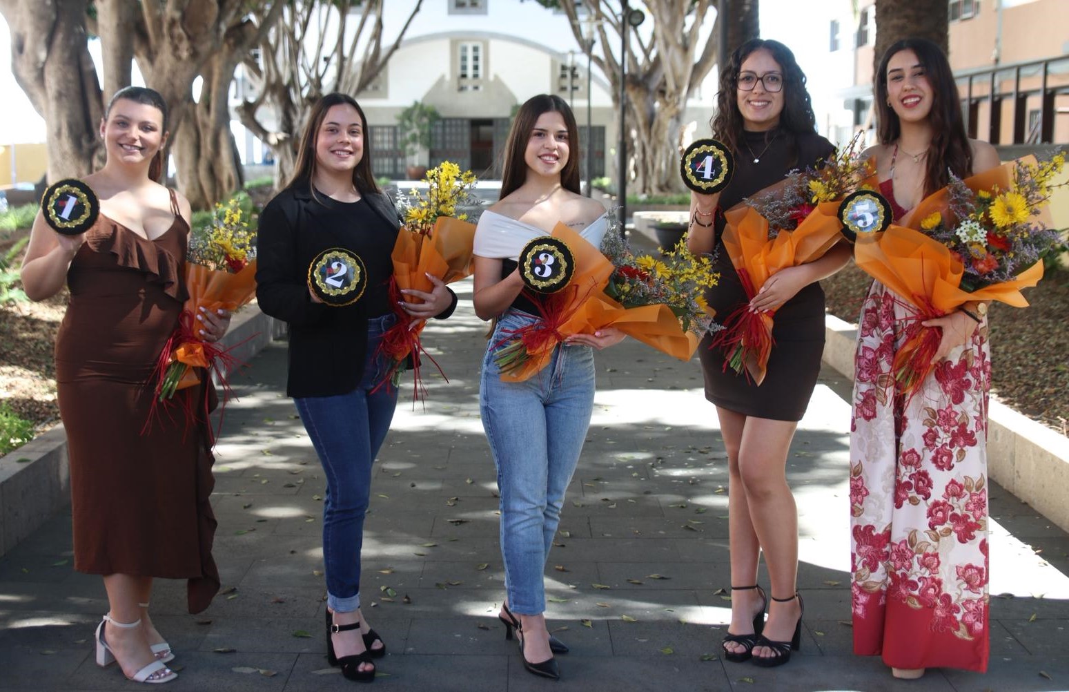 Las aspirantes al título son: Paulina Expósito Dalux, patrocinada por Quirorelax Tenerife e Infinity Klothz; Laura Mesa Cabrera, con el patrocinio de Academia Mencey, Rumberos FM y comparsa Los Guajeiros; Sara Luis Santos, por comparsa Aborasau, Floristería Carmita y Edu mantenimiento y reformas; Cathaysa Santos Miranda, por Instalaciones de fontanería Zerpa y Peluquería Elisabeth Santos, y Carolina Casañas Palenzuela, por Peluquería canina Bilu y Dacar.