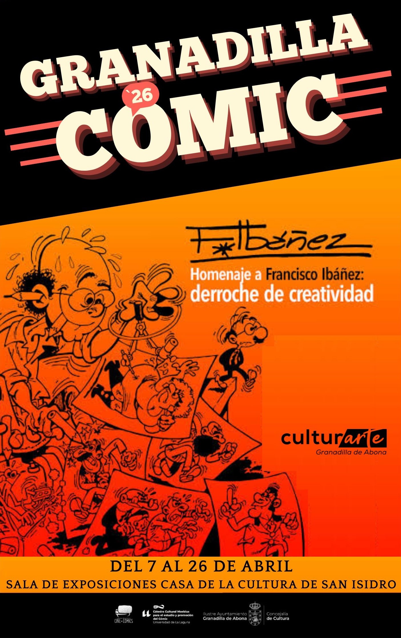 El Ilustre Ayuntamiento de Granadilla de Abona, a través de la Concejalía de Cultura y Fiestas, cuyo responsable es Carlos Abismael Díaz Barreto , invita a la población a visitar la exposición “ Homenaje a Francisco Ibáñez “, de la Fundación Cine+Cómics, que se inaugurará hoy martes a las 19:00 horas en la Sala de Exposiciones de la Casa de la Cultura de San Isidro.