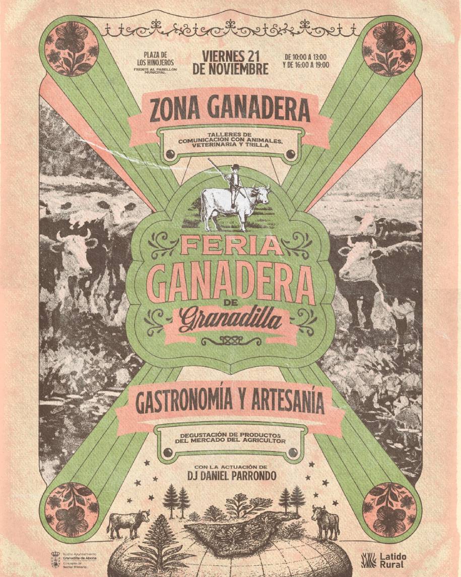 El Ayuntamiento de Granadilla de Abona, a través de la concejalía del Sector Primario dirigida por José Sanabria, organiza el viernes, 21 de noviembre, la Feria Ganadera de Granadilla de Abona, una cita dedicada a la defensa y promoción del sector primario, el oficio ganadero y el patrimonio rural del municipio.